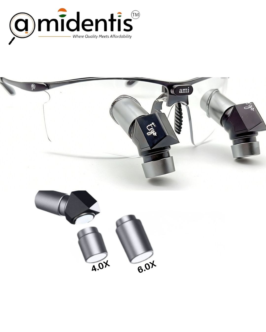 Amidentis TTL Interchangeable Loupes are engineered for professionals who require both precision and flexibility. With advanced Through-The-Lens (TTL) design, these loupes offer a lightweight, customized fit and allow seamless switching between 4x and 6x magnification for different levels of detail during procedures.